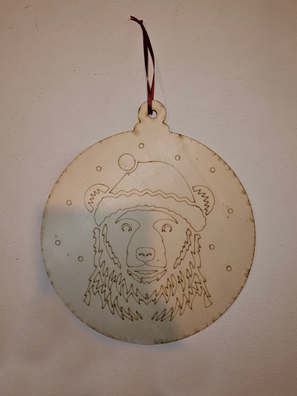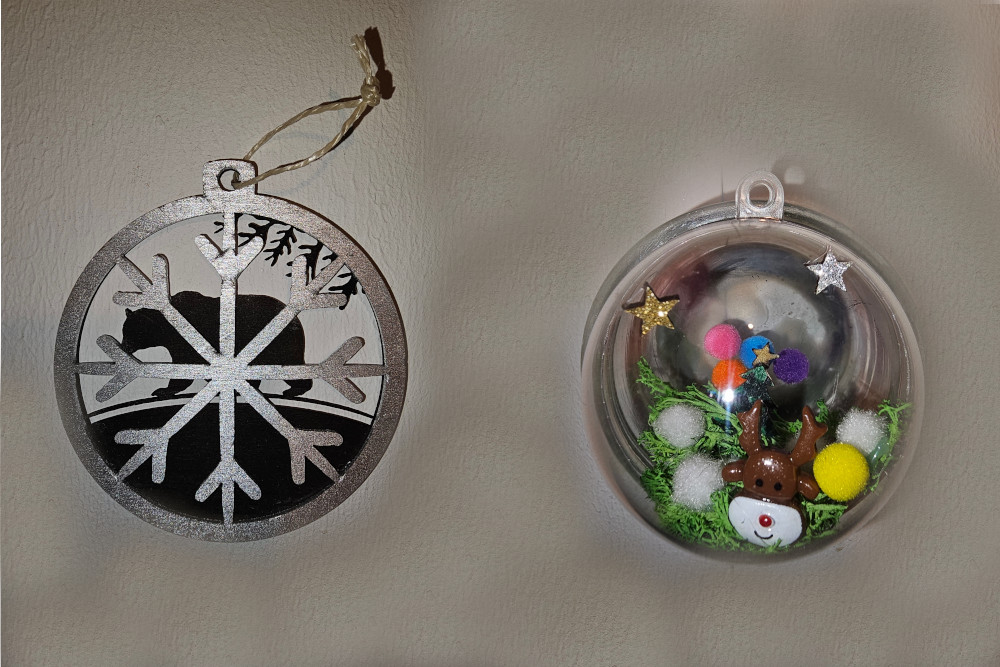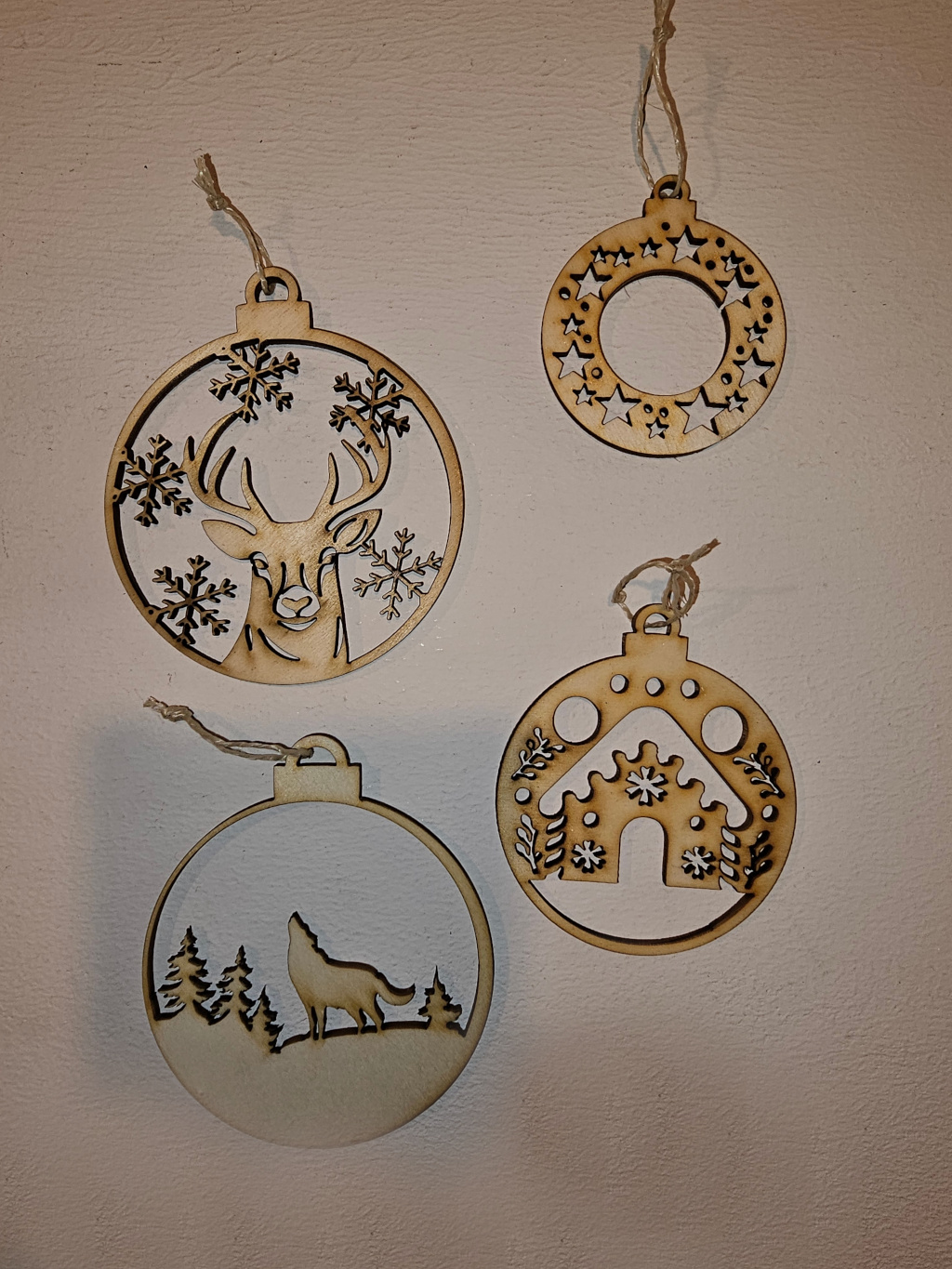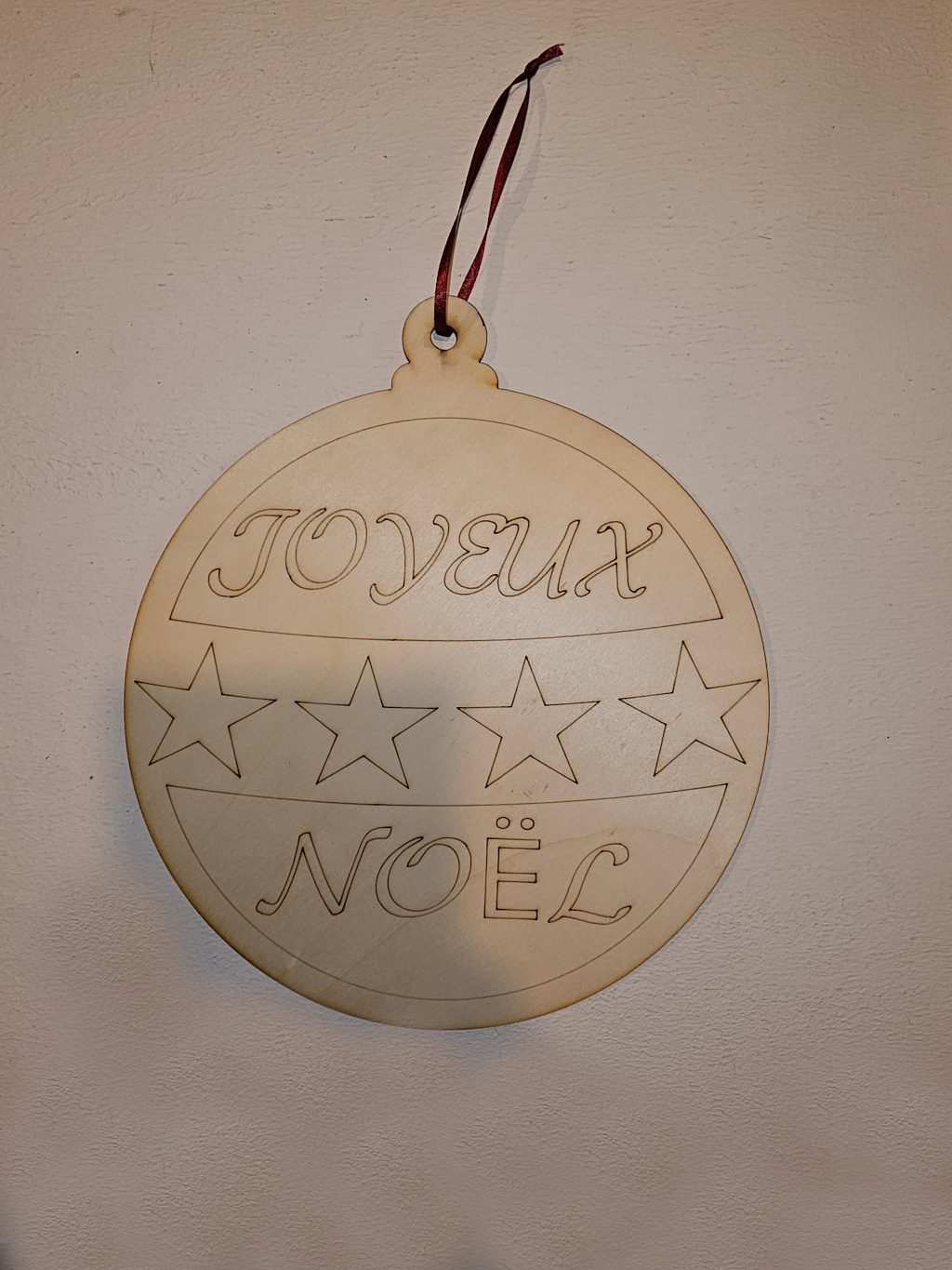 Je réalise des boules en bois découpées à la découpeuse laser que je personnalise par la suite.
